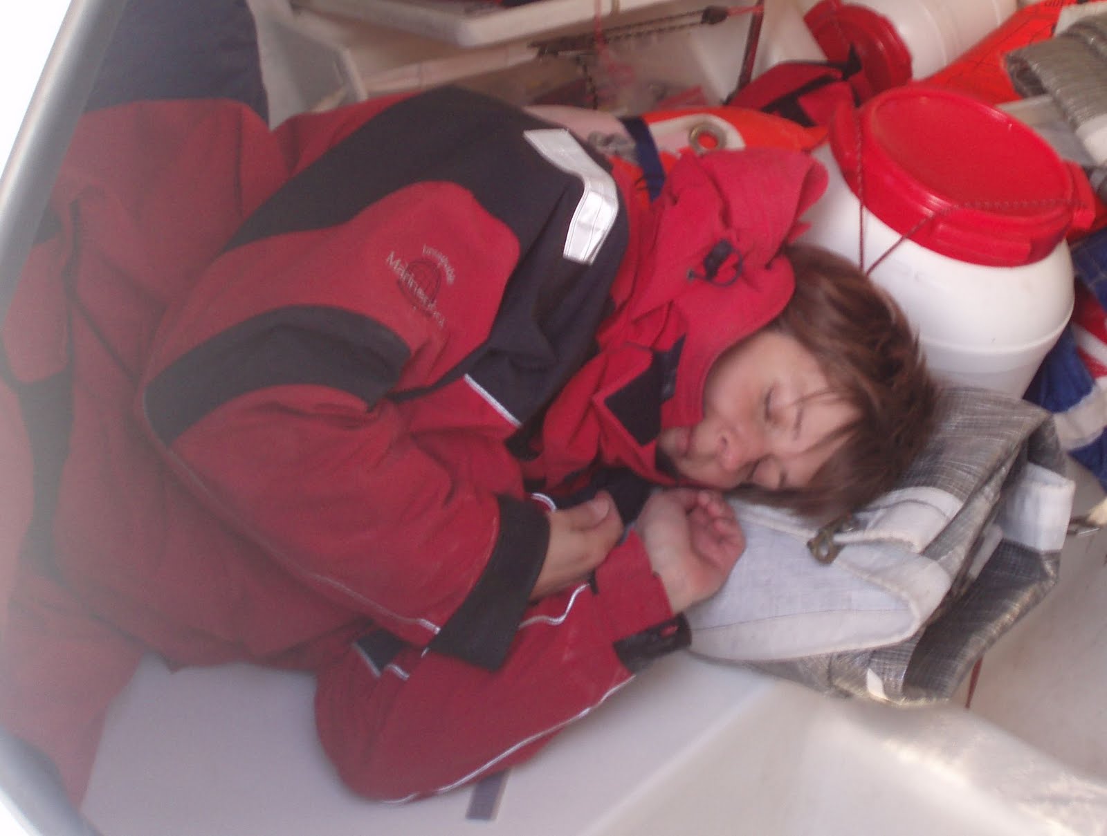 Comment se passe le sommeil à bord ?Les conditions météo et la conduite du bateau dictent la conduite du skipper qui est au service de son bateau. Donc si au bout de 5 minutes (ou même 1 malheureuse petite minute parfois !), le bateau nous paraît déséquilibré, il faut se lever et aller régler le problème. Adieu grasse mat, lit douillet et couette moelleuse ! A bord, c’est un sommeil haché menu et un sac à voile tout trempé en guise d’oreiller et de matelas...